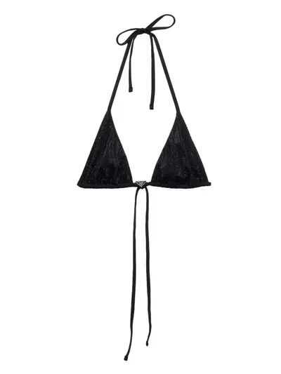 black jersey texture rhinestone embellishment enamel triangle logo triangle cup halterneck tie fastening rear tie fastening adjustable spaghetti straps Be mindful to try on swimwear over your own garments.