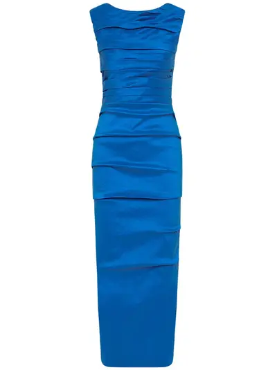 royal blue stretch-design ruched detailing round neck rear zip fastening sleeveless straight hem mid-length