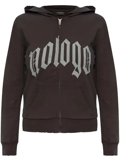 brown cotton blend logo print to the front zip fastening two front pouch pockets classic hood long sleeves ribbed cuffs and hem