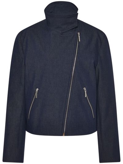 indigo blue cotton blue twill weave funnel neck off-centre front zip fastening long sleeves front zip fastening pockets straight hem