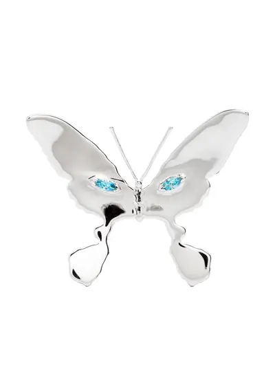 sterling silver polished finish stud design butterfly shape crystal embellishment post-back fastening for pierced ears This is a single earring.