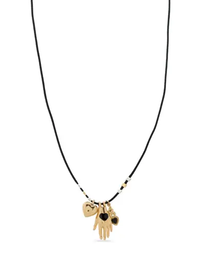 black/gold-tone brass heart pendant spring-ring fastening gold-tone hardware