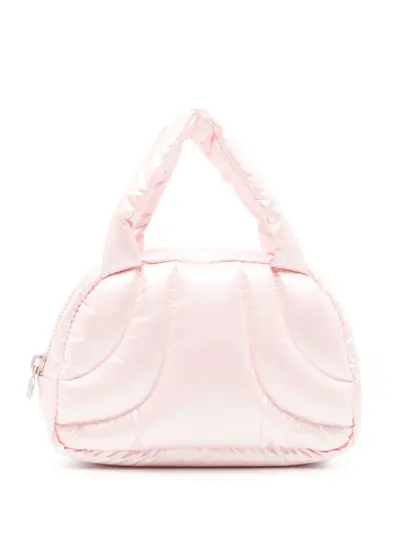 light pink recycled polyester padded design metallic effect two rolled top handles signature trefoil logo detail main compartment internal patch pocket internal logo tag tonal hardware all-around zip fastening