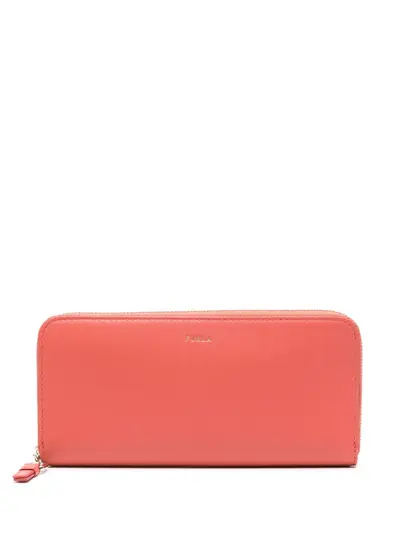 coral red leather logo print to the front partitioned compartment internal zip-fastening pocket internal card slots internal note compartments full lining all-around zip fastening