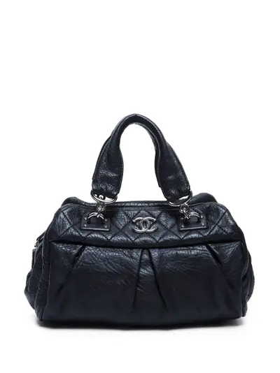 circa 2009 black leather diamond quilting gathered detailing signature interlocking CC logo two top handles top zip fastening main compartment internal slip pocket silver-tone hardware Serial Number: 12363954 This item comes with an original Chanel authenticity card. Condition: GOOD. This previously owned and used item is in good condition with minimal signs of use. This may include fading of material or plating and scratches.