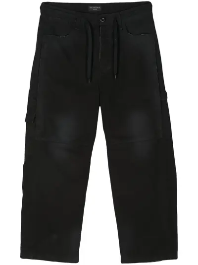 black cotton ripstop texture drawstring waist belt loops classic five pockets side cargo pocket side slit pocket rear keeper loop cropped raw-cut hem concealed fly and button fastening When buying this unisex item, keep in mind that it is graded in standard men's sizing.