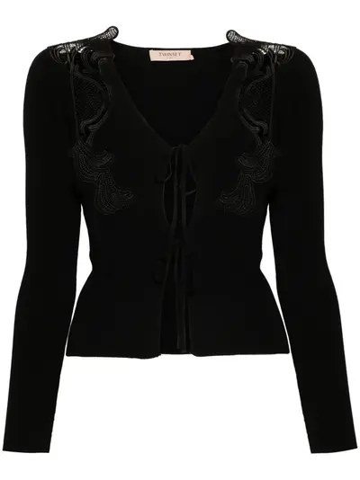 Twin-Set lace-panels ribbed-knit cardigan 24206150 Twin-Set (lpn26620791)