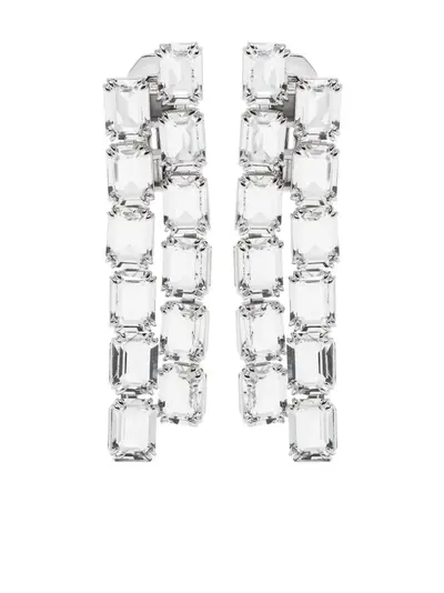 silver-tone polished effect clip-on design rhodium plating drop design gem embellishment These earrings come as a pair.