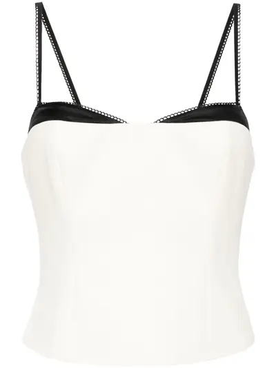 white/black stretch-design sweetheart neck smocked panel contrasting border full lining