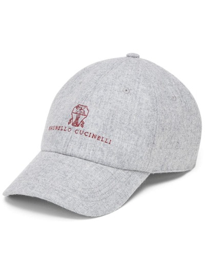 light grey virgin wool embroidered logo to the front fabric-covered button at the crown eyelet detailing round crown adjustable strap to the rear curved peak