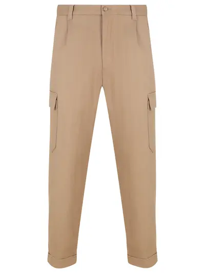 -Бежевые брюки-карго из хлопка от BOSS BLACK.