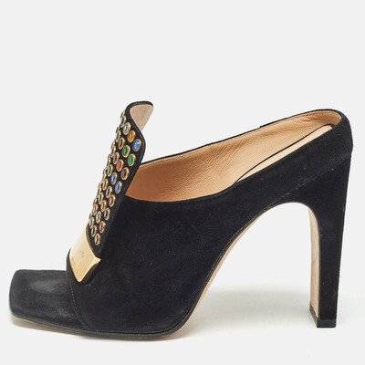 Sergio Rossi Black SR1 Crystals Heel Mules Size 36.5 1009621 (чёрный, lpn26696269)