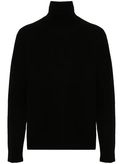 black boiled wool roll neck long sleeves ribbed cuffs and hem straight hem