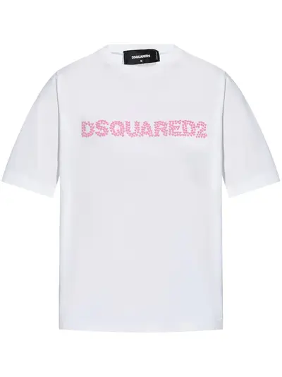 white cotton embroidered logo at the chest short sleeves crew neck straight hem