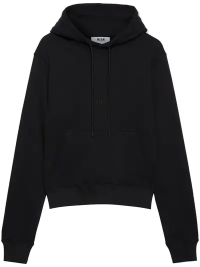 black cotton embroidered logo to the front drawstring hood long sleeves front pouch pocket straight hem
