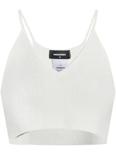 white spaghetti straps ribbed knit straight hem logo patch to the rear V-neck