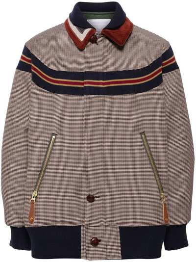 multicolour wool blend houndstooth pattern stripe detailing straight-point collar front button fastening long sleeves two side zip-fastening pockets ribbed cuffs and hem straight hem