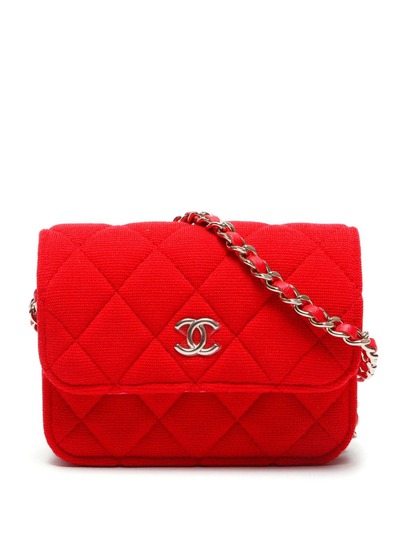 circa 2020s scarlet wool diamond quilting signature interlocking CC logo fabric and chain-link shoulder strap foldover top with magnetic fastening main compartment full lining silver-tone hardware Serial Number: LUX929X5 Condition: GOOD. This previously owned and used item is in good condition with minimal signs of use. This may include fading of material or plating and scratches.