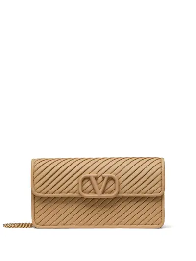 beige calf leather quilted VLogo Signature detachable chain-link shoulder strap partitioned compartment internal zip-fastening pocket internal slip pocket internal card slots gold-tone hardware