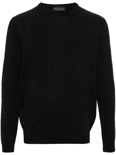 black merino wool ribbed knit drop-stitch detailing crew neck long sleeves straight hem unlined