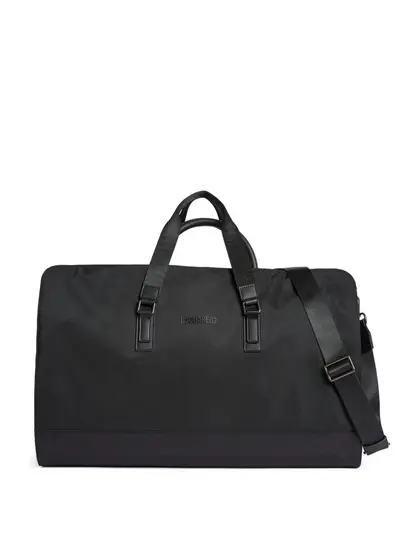 black raised logo detail gunmetal-tone hardware top zip fastening adjustable detachable shoulder strap two top handles main compartment removable cover