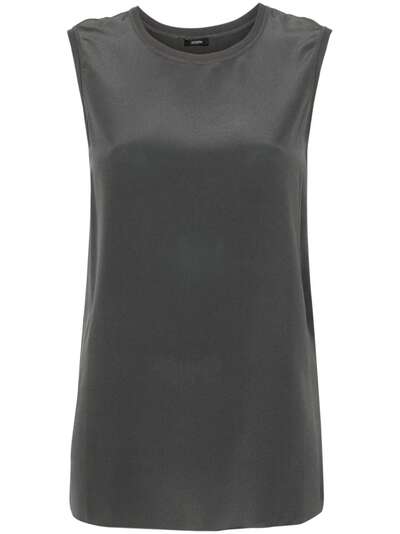 slate grey silk satin finish crepe texture crew neck sleeveless straight hem