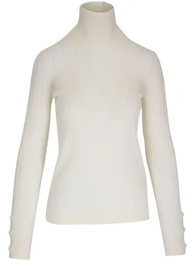ivory white virgin wool-cashmere blend ribbed knit roll neck long sleeves buttoned cuffs straight hem