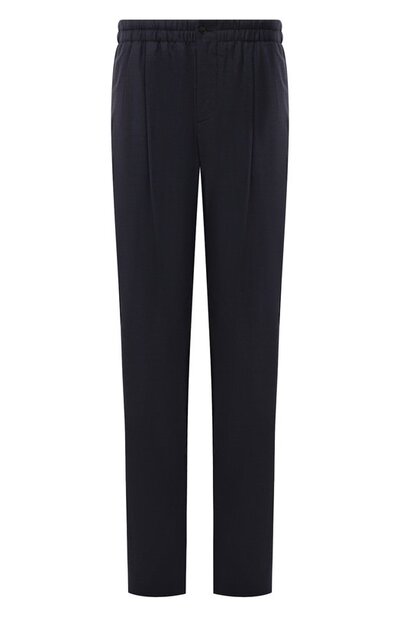 Чуть зауженные брюки из тонкой костюмной шерсти – удачное завершение непринужденного повседневного образа. Модель с боковыми и прорезными задними карманами дополнили эластичным поясом, позволяющим обойтись без ремня.