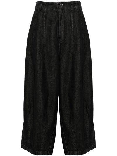 black cotton denim dart detailing logo-engraved silver-tone hardware logo-debossed patch to the rear embroidered logo to the rear belt loops two diagonal pockets to the sides rear patch pocket front button and zip fly fastening high-rise wide cropped leg unlined When buying this unisex item, keep in mind that it is graded in standard men's sizing.