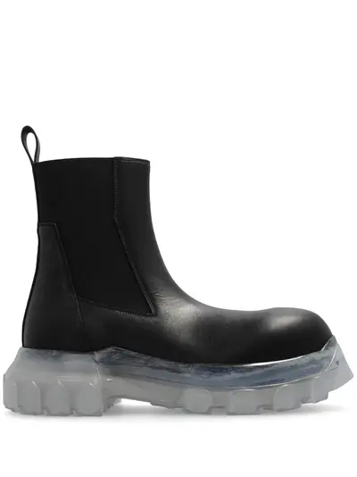 black calf leather ankle-length pull-on style elasticated side panels pull-tab at the heel round toe chunky rubber sole