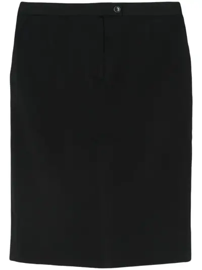 circa 2000s black wool twill weave two side slash pockets knee-length central rear vent unlined straight hem concealed zip-fly and button fastening Condition: GOOD. This previously owned and used item is in good condition with minimal signs of use. This may include fading of material or plating and scratches.