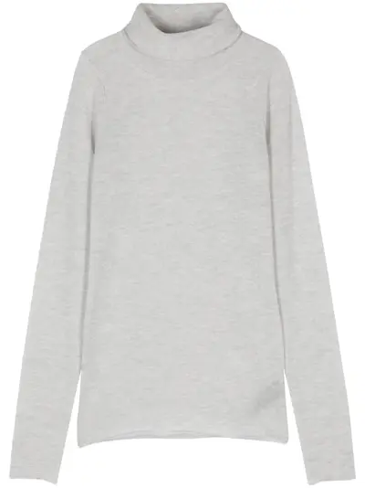light grey alpaca wool-blend knitted construction mélange effect roll neck long sleeves straight hem