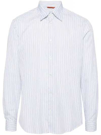 white cotton vertical stripe pattern classic collar front button fastening buttoned cuffs long sleeves