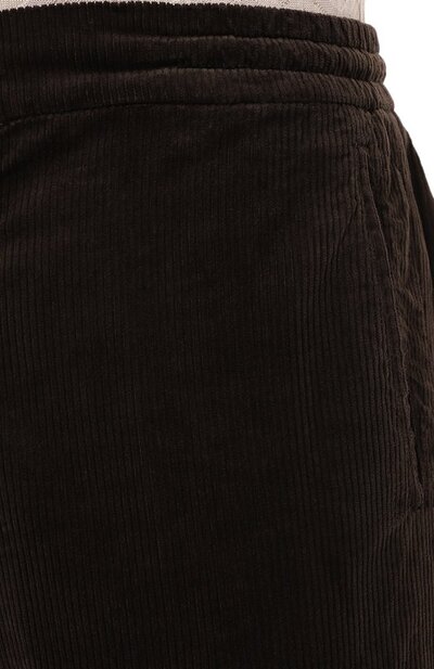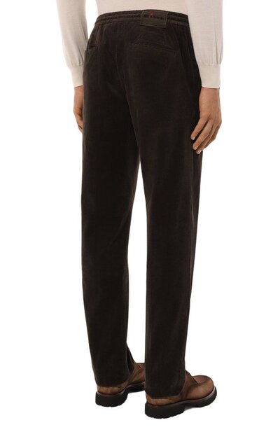Брюки из хлопкового вельвета стрейч с добавлением кашемира станут удачным дополнением повседневного гардероба. Пояс модели с боковыми и прорезными карманами дополнили эластичной вставкой и потайной кулиской, регулирующей посадку.
