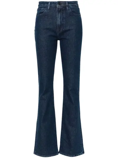 gravity blue cotton blend denim high-rise button fly fastening belt loops bootcut classic five pockets