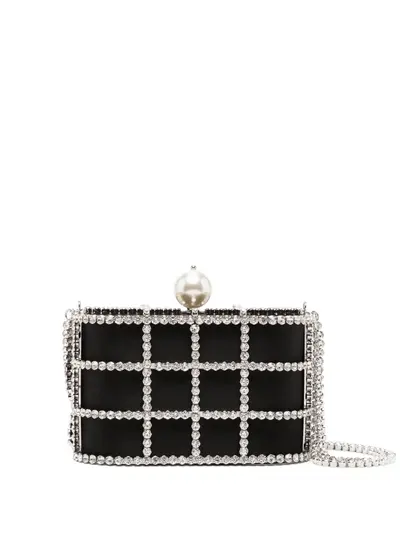 black silver-tone pleated edge crystal embellishment satin finish faux-pearl detailing snap-fit fastening cable-link chain
