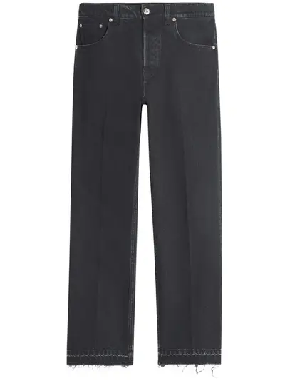 black cotton denim rivet detailing appliqué logo mid-rise concealed fly and button fastening belt loops straight leg classic five pockets cropped raw-cut hem