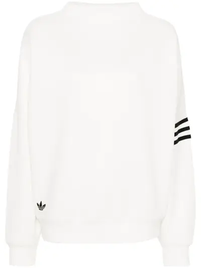 white/black cotton-recycled polyester blend jersey texture mock neck drop shoulder long sleeves with ribbed cuffs signature 3-Stripes logo at the sleeve signature trefoil logo detail to the front unlined straight ribbed hem
