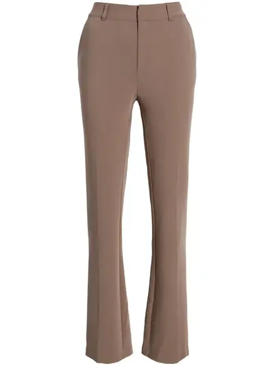 brown pressed crease belt loops concealed front fastening two side inset pockets two rear welt pockets