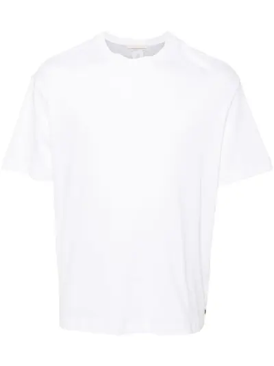 white cotton lightweight jersey crew neck short sleeves logo print to the rear straight hem