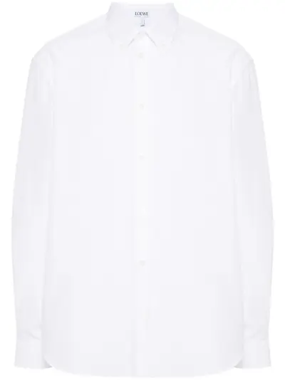 white cotton Oxford weave signature embroidered Anagram motif button-down collar front button fastening drop shoulder long sleeves buttoned cuffs curved hem