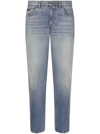 blue cotton stonewashed whiskering effect zip and button fastening belt loops classic five pockets