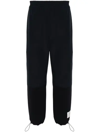 navy blue ripstop texture panelled design jersey panel logo patch to the front signature grosgrain loop tab tapered leg mid-rise elasticated waistband two diagonal pockets to the sides rear flap pocket drawstring hem