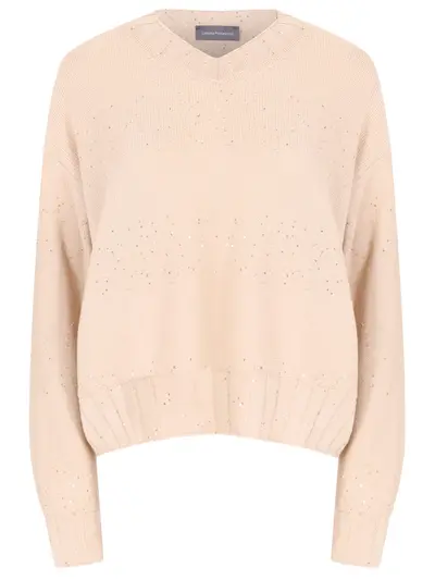 -Бежевый вязаный пуловер из шерсти от LORENA ANTONIAZZI.