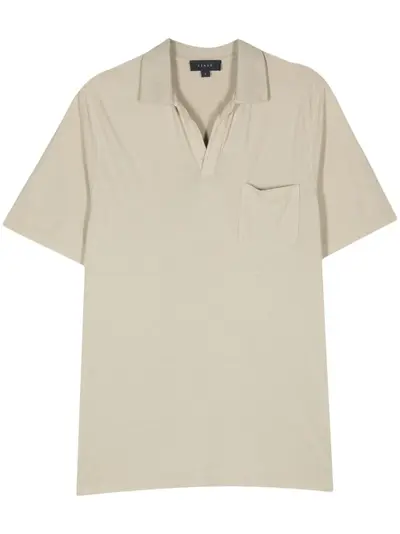 beige cotton lightweight jersey polo collar split neck short sleeves chest patch pocket short side slits straight hem straight hem