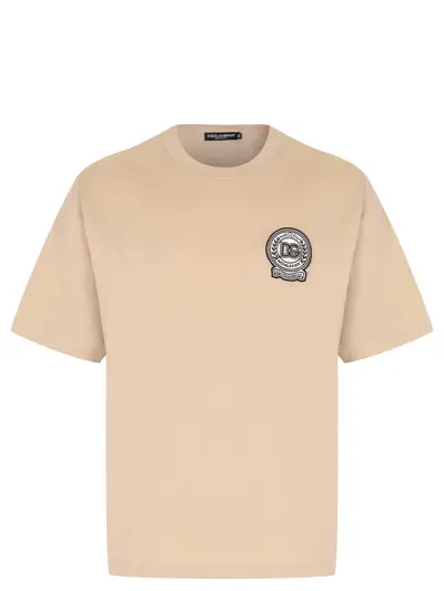 -Бежевая футболка из мягкого хлопка от DOLCE&GABBANA.