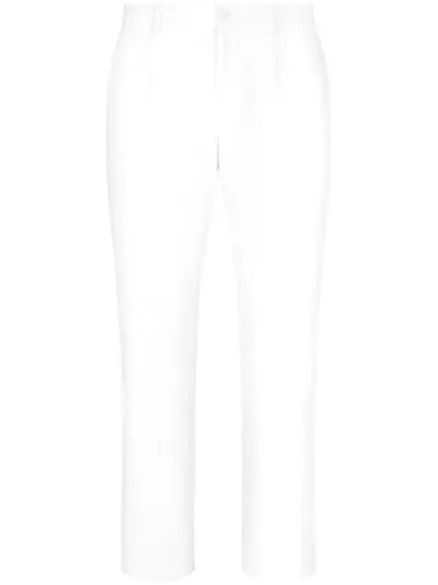 white cotton gabardine weave belt loops dart detailing two side slash pockets two rear welt pockets straight leg front button and zip fastening