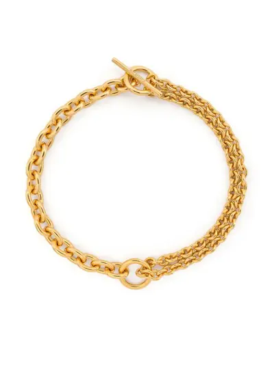 gold plated sterling silver T-bar fastening cable-link chain double-chain design engraved logo