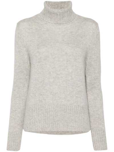 nickel grey virgin wool-cashmere blend ribbed knit mélange effect roll neck long sleeves ribbed cuffs and hem straight hem