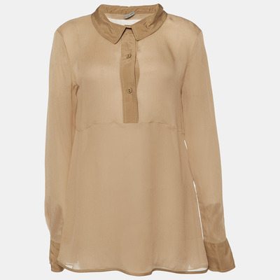 Bottega Veneta Beige Silk Crepe Full Sleeves Top M 1019775 (бежевый, lpn26819697)